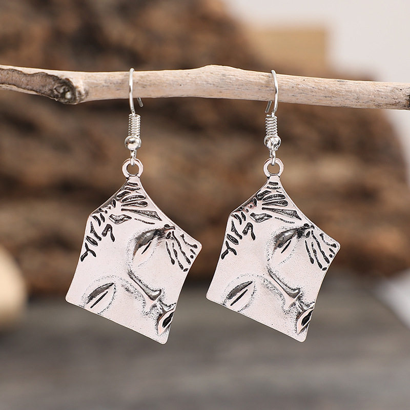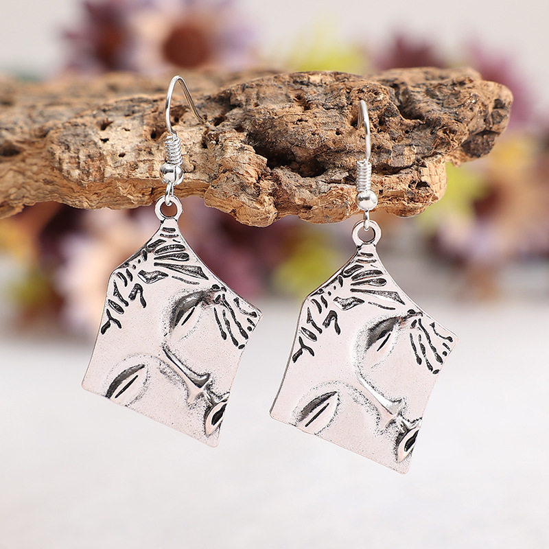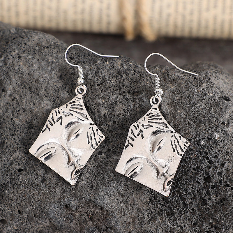 Vintage Tribal Face Alloy Earrings | Ethnic Abstract Boho Statement Jewelry for Women