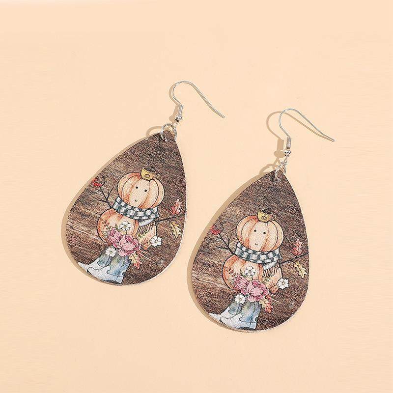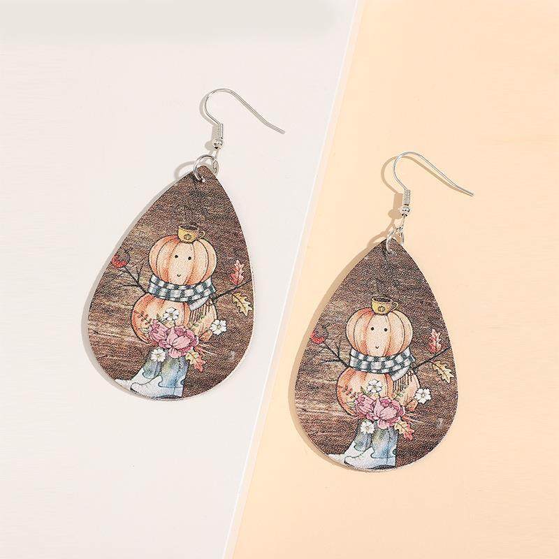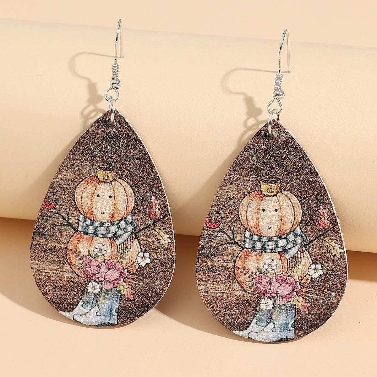Western Fall Pumpkin Snowman Print Leather Earrings Vintage Boot Flower Scarf PU Dangles