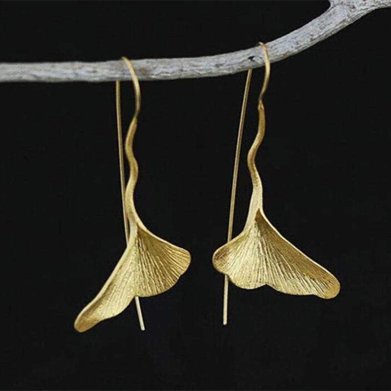 Be the first to review “Wish European and American new style elegant ginkgo leaf fan-shaped ear hook earrings asymmetrical wave earrings”